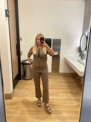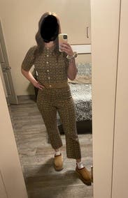 Rented the set. When I put it on, I thought it was cute, but nothing great. HOWEVER, I received soooooo many compliments on this outfit, I was pleasantly surprised! I did think it was slightly itchy when I first put it on but it didn’t bother me at all throughout the day. Would recommend for work or everyday.