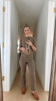 Super cute as a set (with the matching pants)- a bit boxy, but overall fit pretty well. The material is a tad itchy so i wore a tank top underneath and ended up being fine. Overall, cute, but casual look!