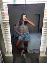 TTS I wore a short sleeve tee under this both times I wore it. Cute print. I should have gotten a small instead of medium. Cute with jeans