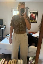 Loved the print and look -- but so, so itchy and impossible to wear a shirt under it because it's cropped and short sleeve.