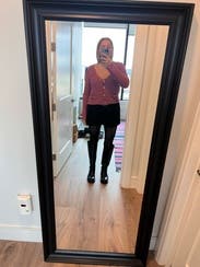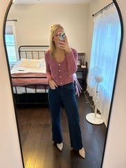 This sweater is a lot nicer than I was anticipating. I usually find gold buttons kind of tacky, but they work here. It’s very soft, not itchy at all, and very flattering. It was big in the shoulders so I could have sized down, but I made it work. It’s also pretty low-cut, so for work I wore a white cami, but if I wore it out, I’d just use some fashion tape. Will definitely rent this again!