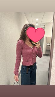 Don’t normally wear pink, but I loved the richness of this color . Can’t wear it without a shell under, but adorable.