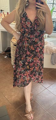 I absolutely loved this dress for a late summer wedding. Beautiful colors and floral pattern, flattering fit, and it was SO comfortable.