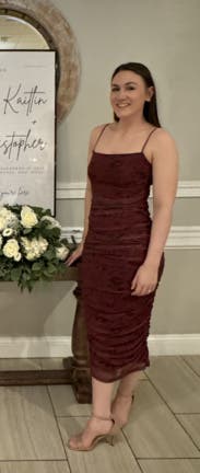 Easy dress to throw on and it fit perfectly! Color felt like a good autumn wedding dress for the October wedding I attended. Would recommend!