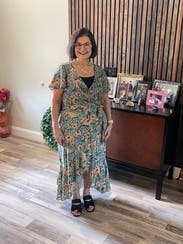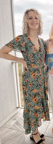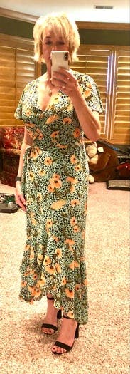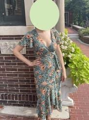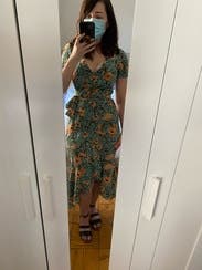 I felt so feminine, pretty and comfortable in this amidst a hot summer day. It was appropriate for daytime and an evening outdoor dinner. Will be renting this plenty more! Just recommend a safety pin if you have boobs or if it's windy...the wrap split makes it hard to be ladylike at times.