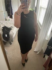 Great dress for a nice work event. If I felt like wearing spanx, it could’ve worked. But it’s not mom-pooch friendly. Fit everywhere else.