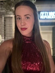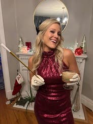 I absolutely love this dress! So cute, fun and flirty. Even though there's no where to go this year. Wanted to get dressed up for a holiday Photoshoot my family and I did. So! Rented this dream! Fits great. Stretchy when you need it. The material is tough and durable and the glitter is to die for. Slit at the bottom of the dress is great and not too high up on this 5'4" gal!