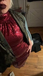 I wore this dress to my husband’s holiday party at work and it was perfect. It’s surprisingly stretchy/forgiving and not scratchy despite the sequins. It’s a very classy silhouette and I got so many compliments! Highly recommend. If you are in between sizes I’d recommend sizing down.