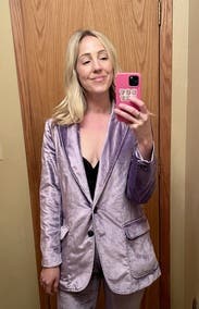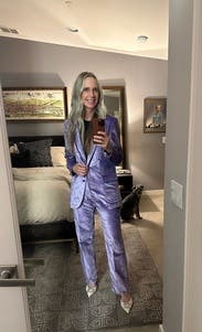 I had rented the pants for NYE and didn’t like them as much as I thought, but the blazer… different story! Loved it!!! The color, the soft fabric. It’s beautiful. Does run large! Size down unless you want the oversized look.