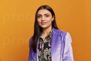Purple velvet (59% Cotton, 41% Viscose). Blazer. V-neck. Long sleeves. Front button closure. 31.5" from shoulder to hemline. Imported.