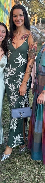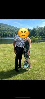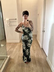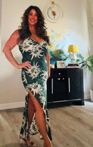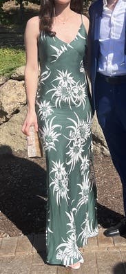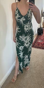 This dress hit all the right places. Accentuated my hips and bust without being too clingy or tight. I loved the slit in the leg, helped keep me cool at my friends wedding in Colombia. Def recommend renting for a formal tropical/summer event!