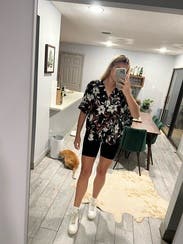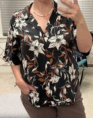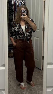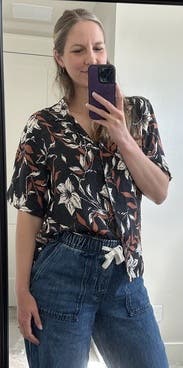 Sooooo cute, soft, and forgiving on my figure. I’m 15 weeks pregnant - too bloated and big for my normal clothes and too small for maternity clothes. This open, breezy top was perfect. I wore the top buttons open for a super fun weekend vibe. Wish I could have kept this one.