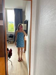 I didn’t wear this because it was so tights and short around my hips and butt area. Was not a flattering fit, even if I went up a size it’s kind of boxy and lacks shape so I don’t think I would have liked the bigger size either