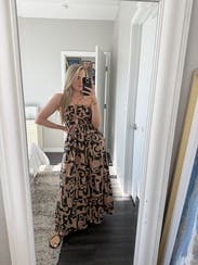 Wore this with flats to a cookout with some friends. Perfect length for me, and the print really stood out!