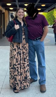 The dress is lightweight and is very comfortable. The bust was too big for me, but I loved the open back, so I wore it anyway. I added a cardigan for work.