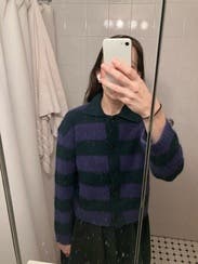 Someone well dressed asked if it was vintage! Love this funky cardigan. Best worn with another long sleeve layer underneath bc it is slightly itchy.