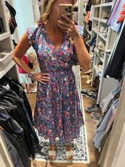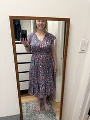 Loved the fit and the print. It fit perfect and was so comfortable. I wish I could have bought it. This brand is easy to wear. I wore it both times with flat sandals but it easily could have been dressed up more if you wanted. It’s worth the rent for sure!!