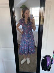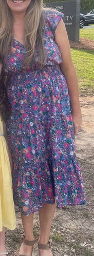 This dress is so comfortable and the floral print has a great pop of color. Could have wore a M, but the L fit was good too.