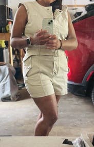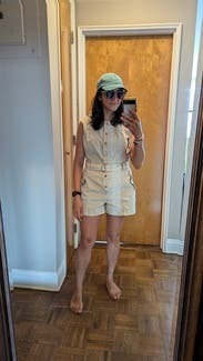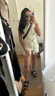 this was such a cute romper to wear to the us open. it was sturdy, but not too hot for all day wear. I am usually an XS/S, and both fit but the S was slightly comfier/roomier