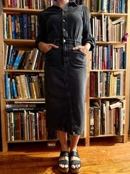 Complements galore! Rolled up the sleeves and paired w a belt and western-style boots. The dress "gives" a little bit as the day goes on, but never lost shape or got baggy. I will definitely be renting this again. Absolutely loved it!!