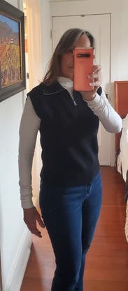 Loved the vest - I put over long sleeve and looked great. Simple piece that elevates a look.