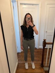 Loved the zippered neck. Wore several times over a long sleeved t-shirt for warmth and style. Did the trick. Almost didn’t swap but the season is changing and I’m wearing less black for now.