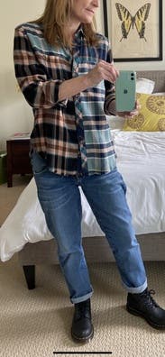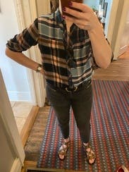 I loved the colors in this shirt so much. The fit was great - I love how Rails button downs drape. The fabric was super soft it felt like pajamas. One star off bc I didn’t love the unfinished hem. But I embraced it and wore with ripped jeans for a very casual look. Could also be tucked into a dark denim and dressed up a bit more.