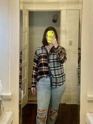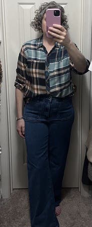 Soft flannel with such fun colors. Whenever I wear this I get compliments. I’ve worn both open as a layering piece and buttoned/tucked in. It works both ways. The bottom is frayed (on purpose). I loved this one so much that I bought it. Even with the colors and mismatched patterns it still works with many outfits.