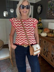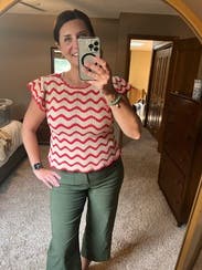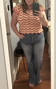 Fun, comfy top and wore it a bunch. I am always looking for fun tops on RTR and have a hard time finding ones I like that are not super cropped. This top was a little short but I wore with the Lee’s barrel jeans which are higher rise than I usually wear.