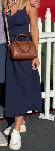 I wanted to buy this one but didn’t as it’s the end of summer. It fits beautifully, well structured, lightweight and has pockets. You can dress up with heels and jewelry or down with flats. The twisted straps were a nice detail.