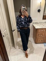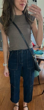 Love these tailored high waisted jeans. Perfect length for petites. Wore them non-stop. Fit TTS