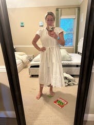 I couldn't help but think of the dresses my toddler has that look just like this and if I were going for a matching moment, then it would be great, but I felt a little odd in bright white and eyelets at 33. Maybe just my personal preference!