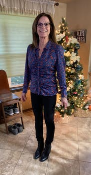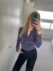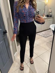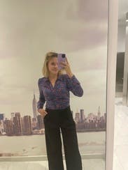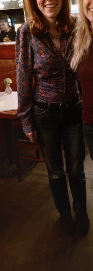 I loved this top it’s fitted and looks great with loose pants. The colors are fun and the material feels elevated. ONLY issue- the buttons gapped around my ribs and stomach which is different than the usual gapping at the chest.