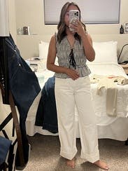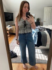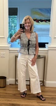 I wore this twice in two different way, once with shorts for a casual afternoon and the other with black jeans to a nicer dinner. Top worked perfectly for both! Fit is great, slightly cropped but with high waisted shorts it’s perfect length
