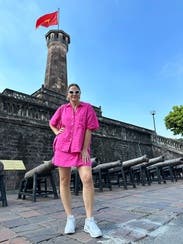 barbie-core with matching top. worn as set with top open over bathing suit for spring break