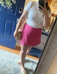 Loved this being a true wrap skirt and tons of compliments on the color! Only complaint was wishing it was a bit longer to be more high waisted