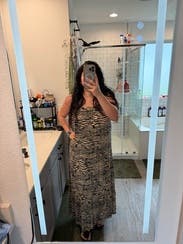 I love this dress so much. its the perfect maxi dress for summer or traveling or whatever you need. I ended up buying it! I wore it on a 24 hour travel day and I was not uncomfortable at all and it works to not wear a bra as well.