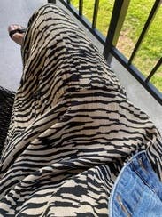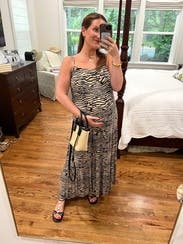 Loved how this felt and loved the print. Worked for pregnancy at 25 weeks and added a sweater and jacket for fall