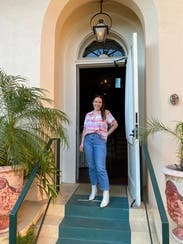 Took it on vacation stay at a gorgeous tranquil Inn. The blouse fit right in with it’s timeless easy elegance. The material is pearly in tone, soft like pajamas and yet so on point for an elegant retreat.
