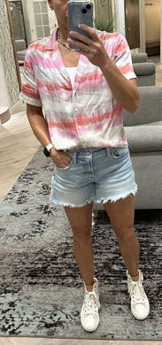 I’d prefer a tad longer so I could tie it in the front, but I couldn’t with the short length. Liked the colors and easy casual shirt to style.