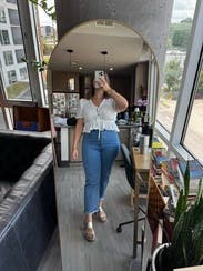 Loved this top, paired with black jeans. even though it's low cut, I never felt too exposed. Fun, feminine, the fabric is great on a hot day. I wore this 3 or 4 times throughout the month