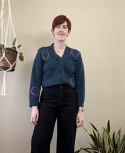 I’ve never had a sweater forcibly turn my frown upside down until now. This is such a fun one and easy to wear with everything. Quality of the embroidery is top tier and apparent that it won’t wear off with long use because they’re all stitched through the green background. 10/10 would recommend.