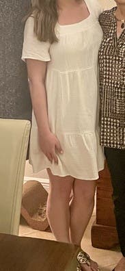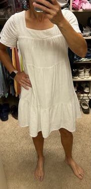 Simple white dress, wore it once, but if weather was nicer I could see multiple wears. Easy to dress up or down