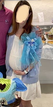 Wore this at 38 weeks to a work baby shower on a casual Friday. Nice flowy fit provided enough room for the bump (sized up from xs/s normally to m).