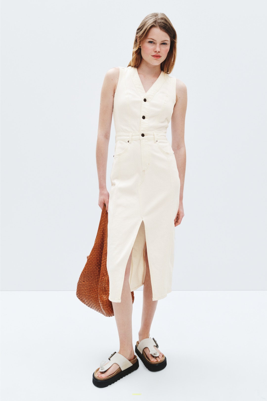Rails' Westwood Midi Dress channels '90s nostalgia with a tailored vest-style bodice and a front slit that adds a modern edge. Pair it with ankle boots or strappy heels to shift effortlessly from daytime casual to evening polish.