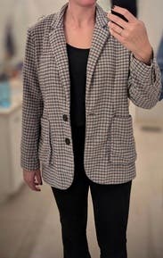 Felt like I was wearing my dads jacket, like I did when I was a kid. Nice pattern, very soft fabric, not structured like I want for a blazer