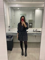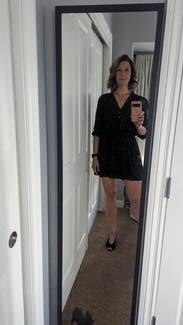 Love this. Might keep longer. I feel like I can wear this anywhere. Date night, family birthday, girls night, anywhere. Skirt is short - beware of breeze!