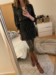 I wore this to a party with over the knee leather boots and black tights, it’s very slimming and flattering.