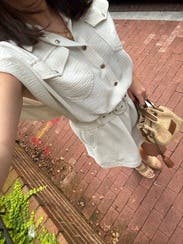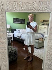 Loved that this was an instant pulled together look. It was a tad short for me. The baggy top with the belt looked great together, and loved the light material. The bottom is lined which I appreciated as well. Great summer look!