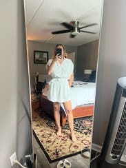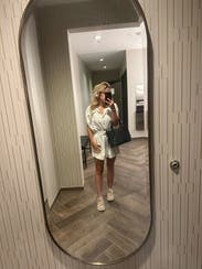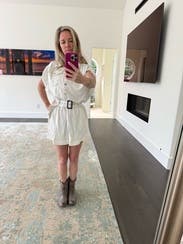 the perfect pool cover up but also wore to the rodeo! fit was perfect and didn’t feel too short at all with boots!